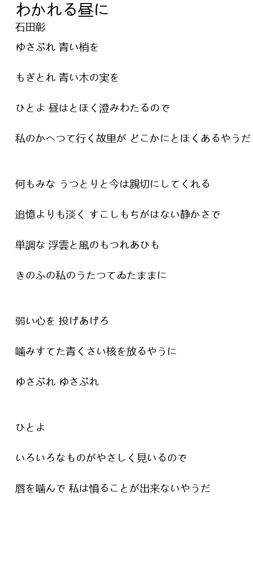 ひとよ 昼はとほく澄みわたるので |