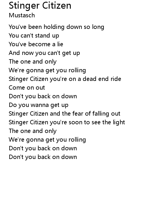 | Stinger Citizen you're on a dead end ride | |