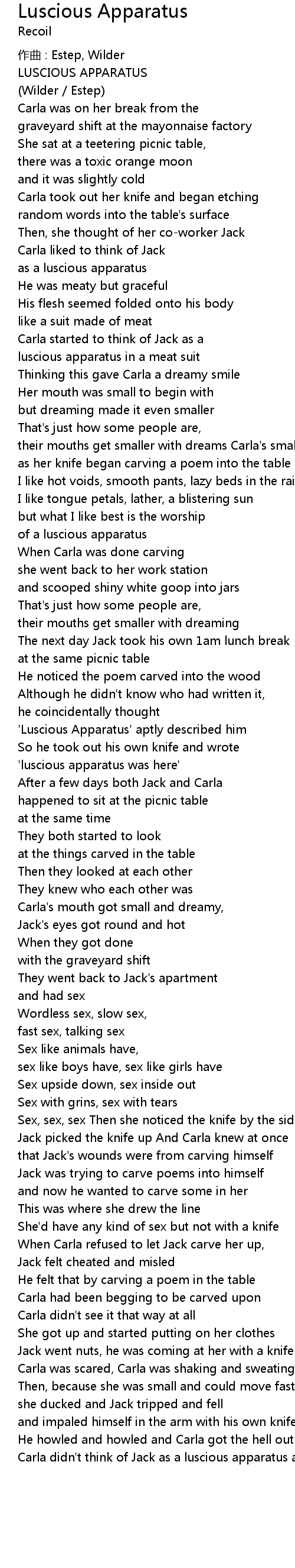 | Carla didn't think of Jack as a luscious apparatus after that |
