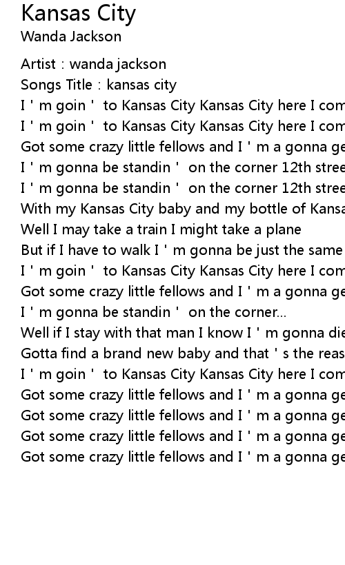 | [00:17.18] | I'm goin' to Kansas City Kansas City here I come |