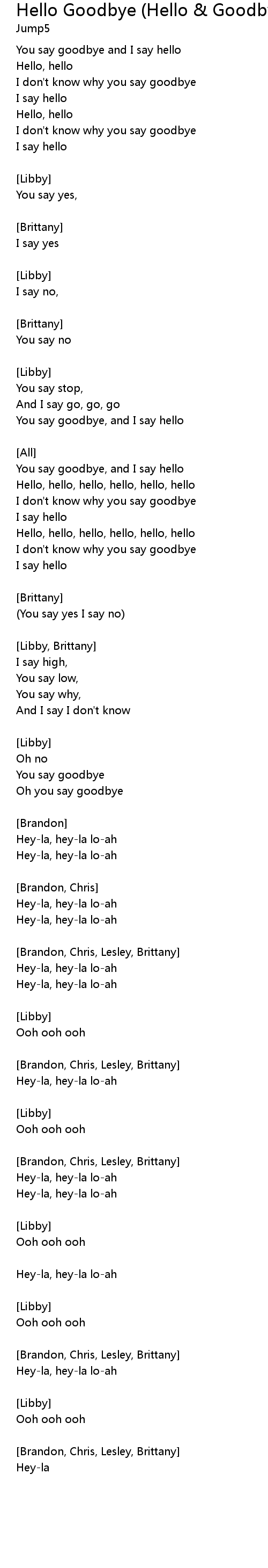 You say goodbye and I say hello |