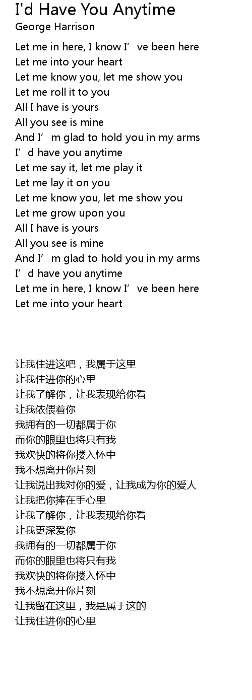 | Song | I'd Have You Anytime |