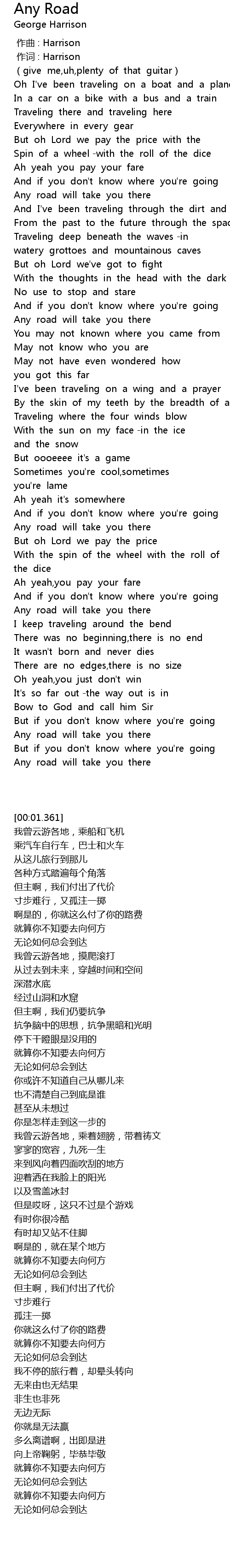 | [00:37.61] | Any road will take you there |