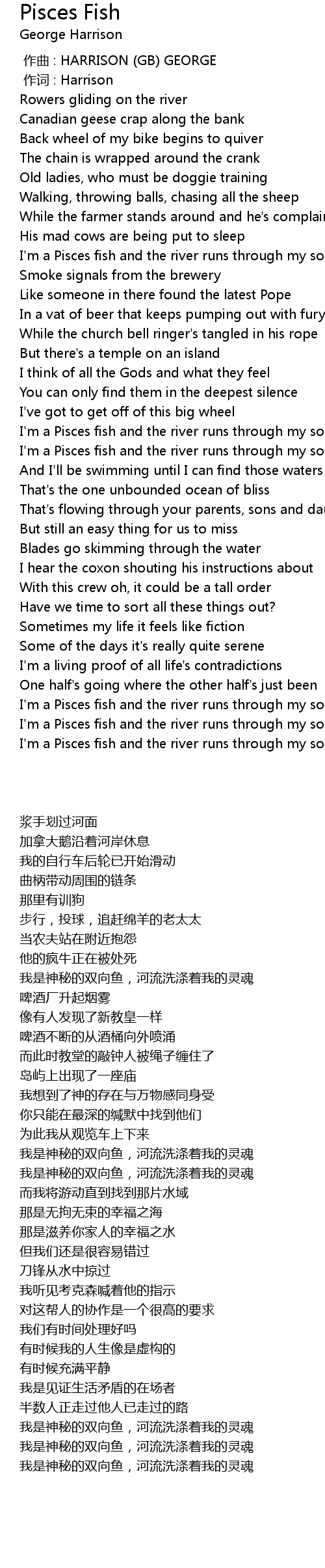 | [02:16.74] | I' m a Pisces fish and the river runs through my soul |