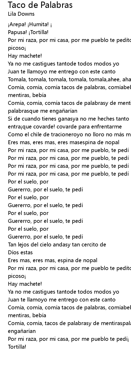 | Song | Taco de Palabras |