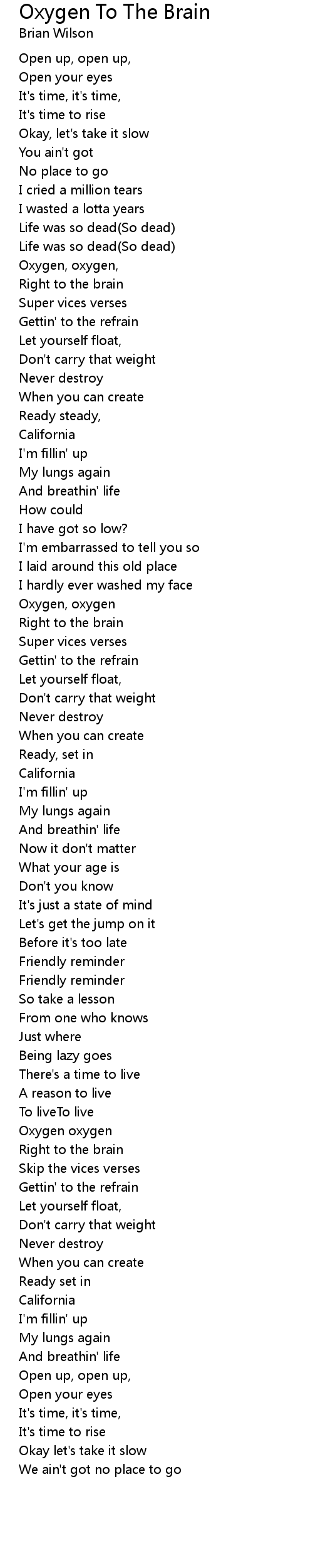Oxygen, oxygen, |