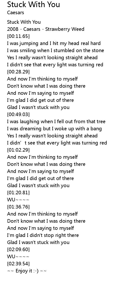 | [00:43.76] | Glad I wasn' t stuck with you |