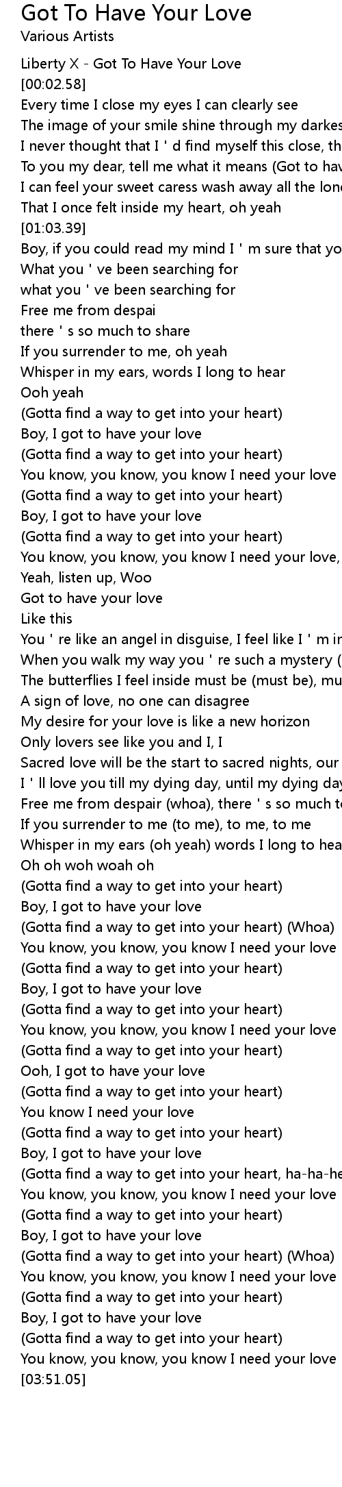 | [00:00.65] | Liberty X - Got To Have Your Love |