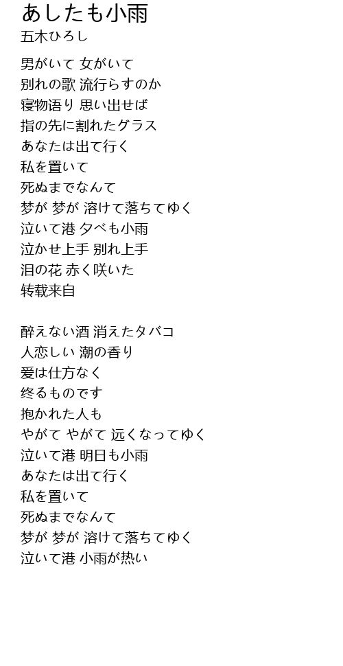 | 泣いて港 小雨が热い |