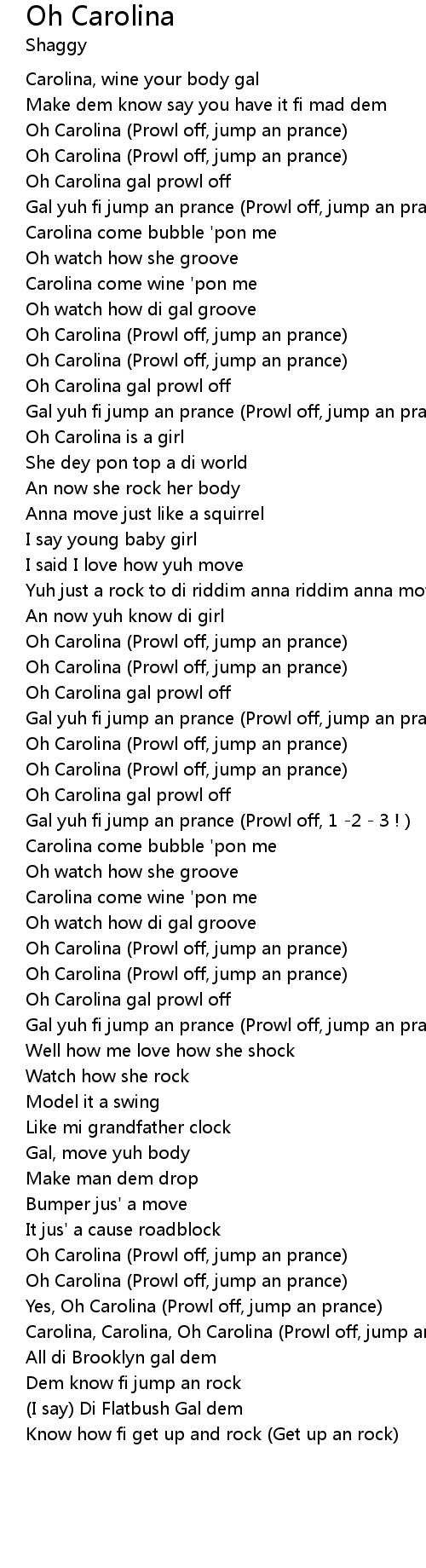 Carolina, Carolina, Oh Carolina (Prowl off, jump an prance) |