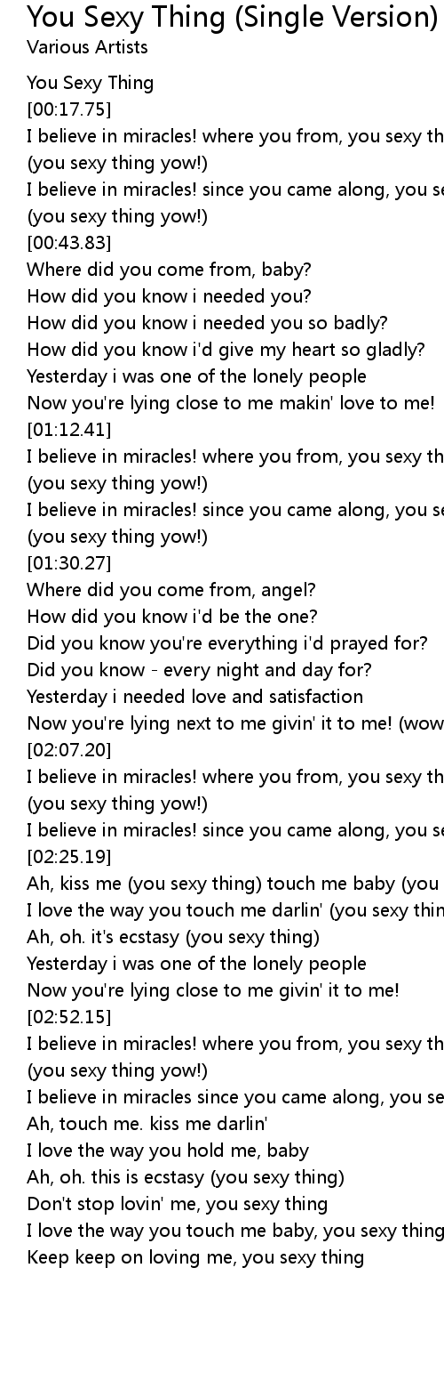 I believe in miracles since you came along, you sexy thing |