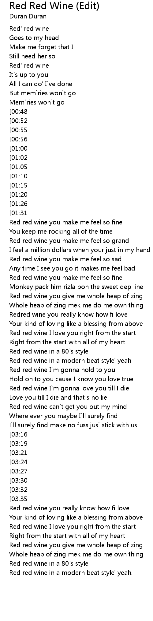 Red red wine you really know how fi love |