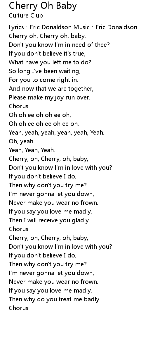 | Cherry, oh, Cherry, oh, baby, | |