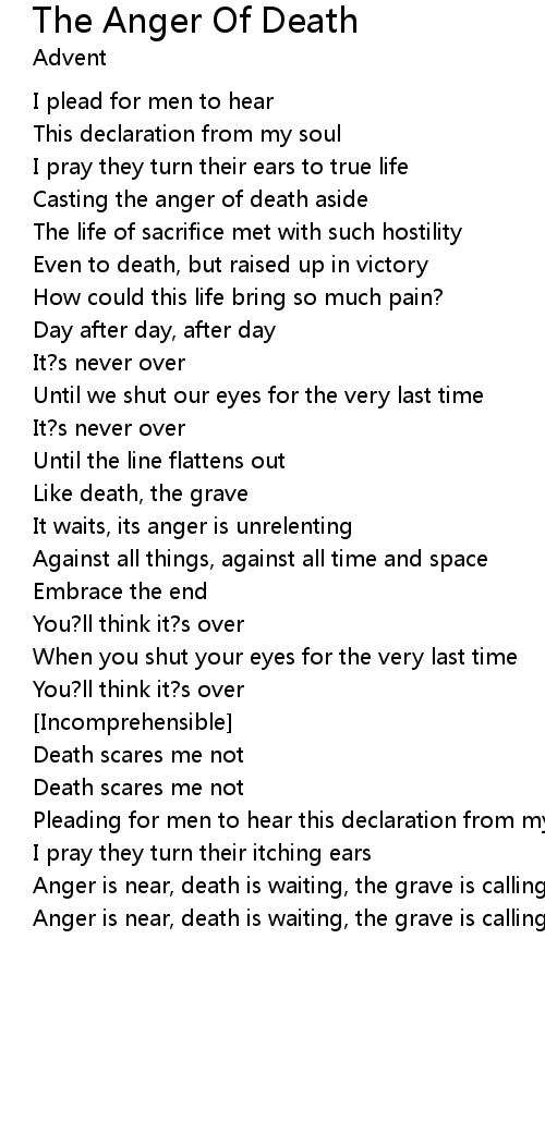 Anger is near, death is waiting, the grave is calling |