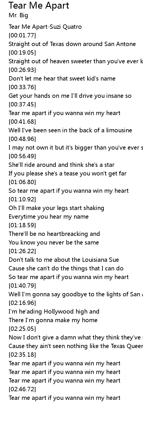 Tear Me Apart-Suzi Quatro |