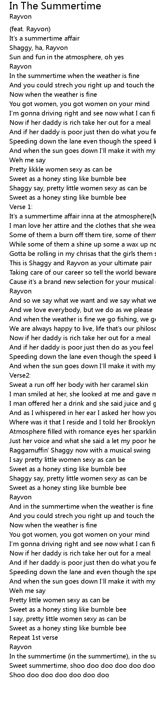 Sweet summertime, shoo doo doo doo doo doo doo doo doo doo |