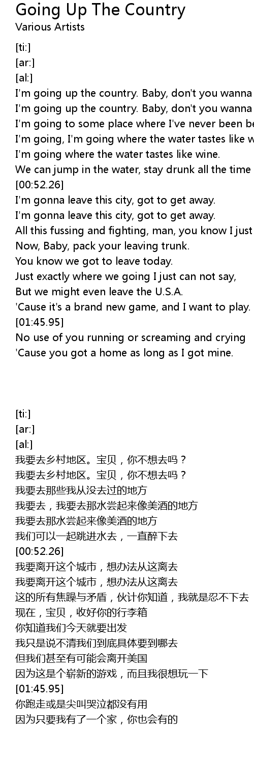I'm going up the country. Baby, don't you wanna go? |