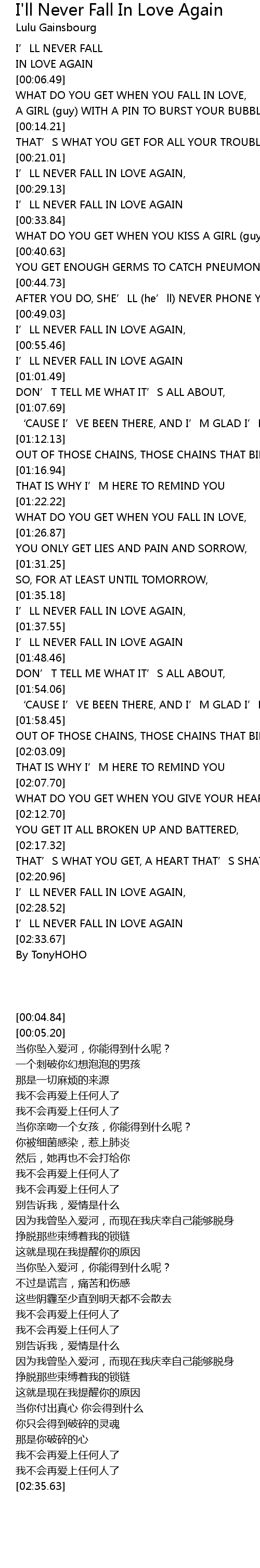 | [02:35.63] | By TonyHOHO |