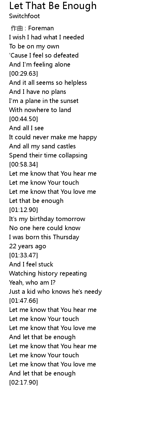 | [02:13.92] | And let that be enough |