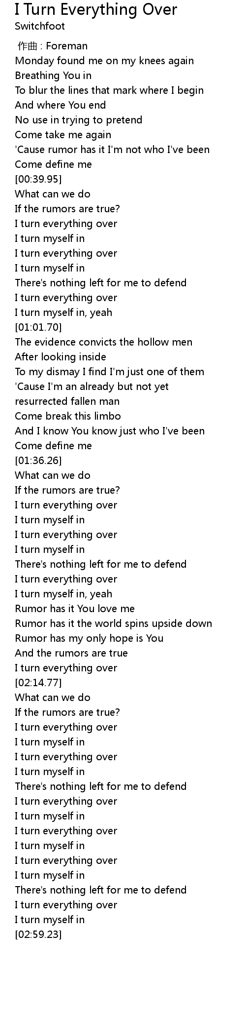 | [00:33.14] | 'Cause rumor has it I'm not who I've been |