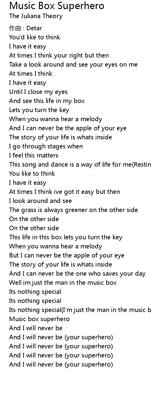 | Song | Music Box Superhero |
