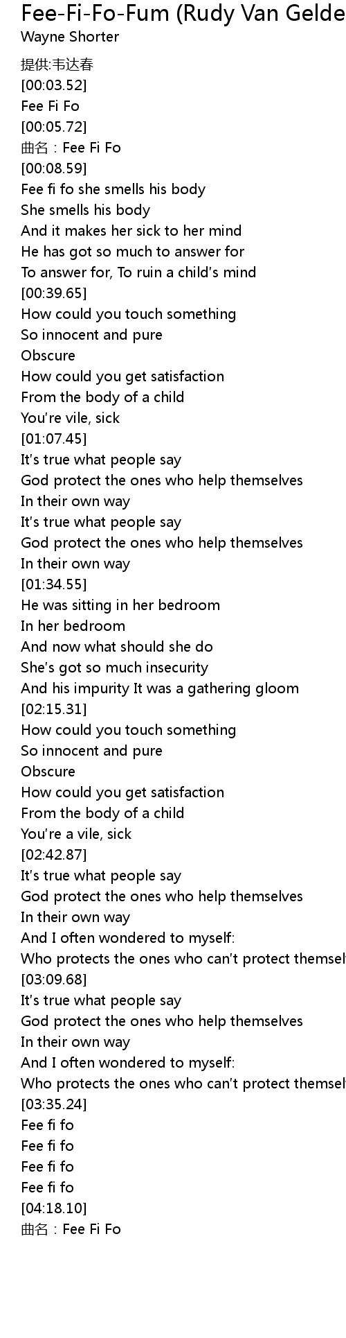 | [00:04.77] | Fee Fi Fo |