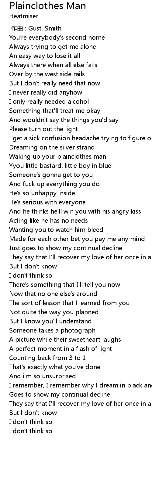 | [00:55.42] | Waking up your plainclothes man |