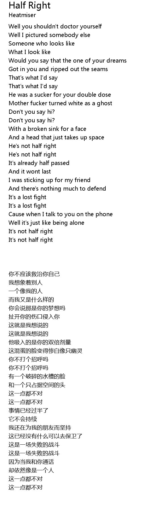 It's not half right |