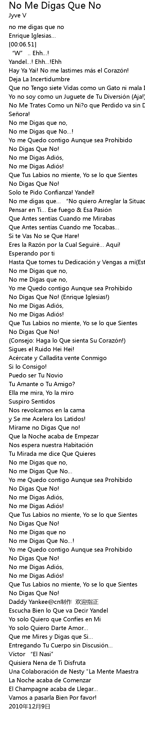 | [01:58.90] | No Digas Que No! (Enrique Iglesias!) |