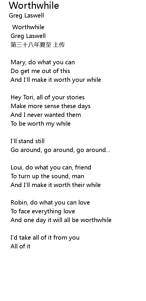| Song | Worthwhile |