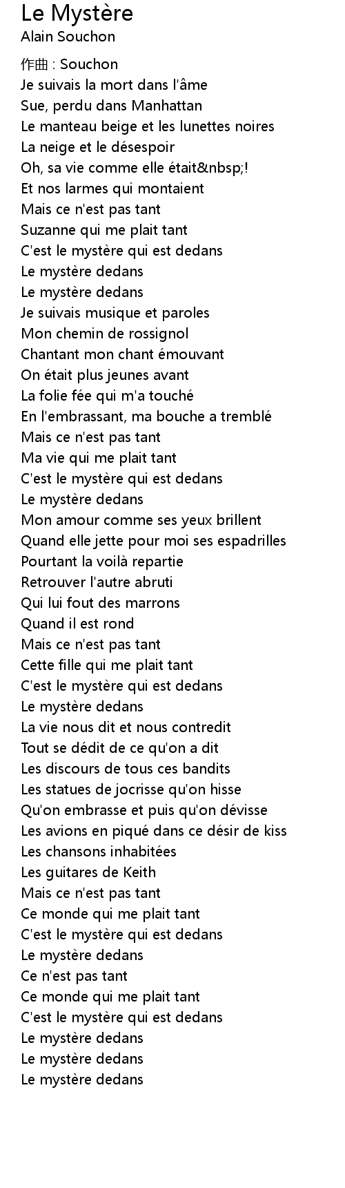 | Song | Le Mystère |