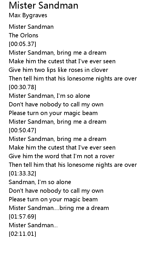 Mister Sandman, bring me a dream |