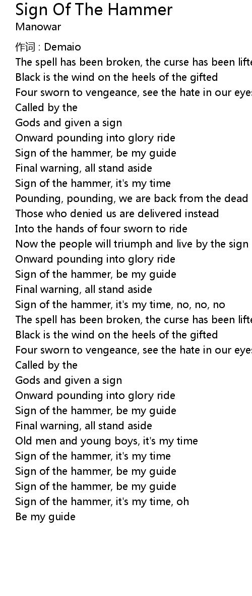 | Sign of the hammer, it' s my time, oh | |