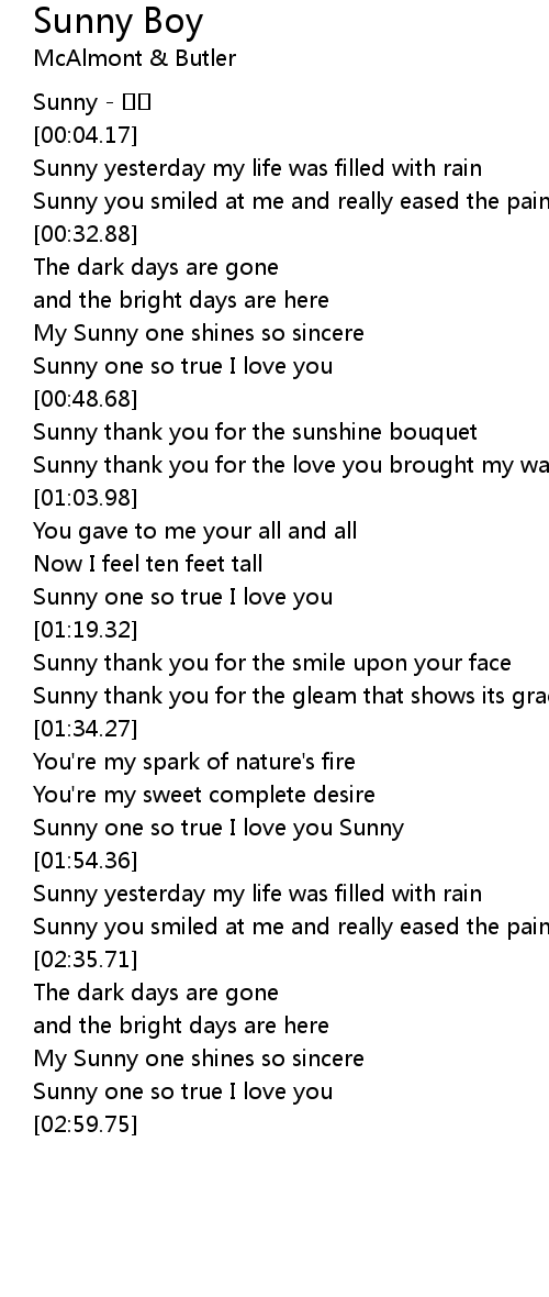 | [02:28.99] | Sunny you smiled at me and really eased the pain |