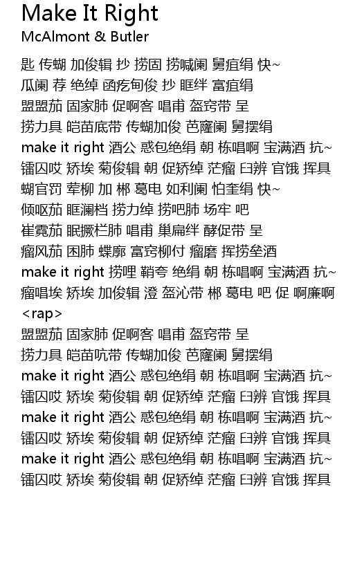 | [03:16.42] | make it right 酒公 惑包绝绢 朝 栋唱啊 宝满酒 抗~ |