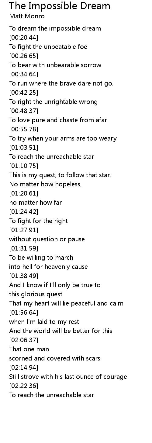 To dream the impossible dream |