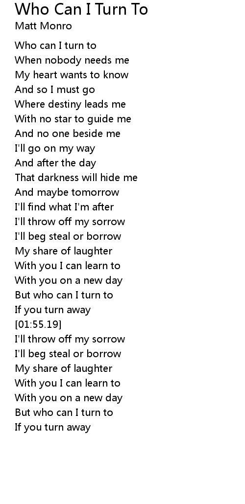 | [01:43.57] | But who can I turn to |