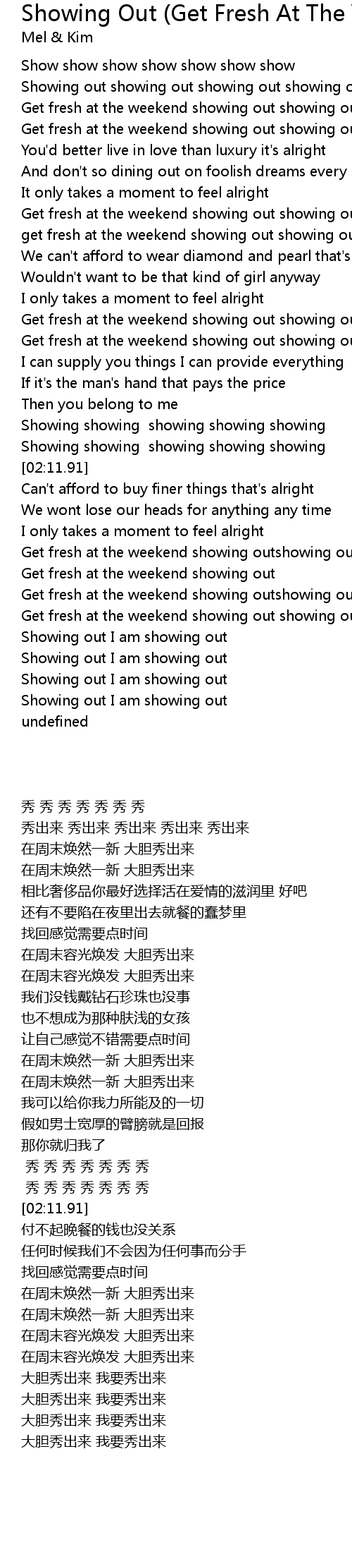 [02:55.52] Get fresh at the weekend showing outshowing out