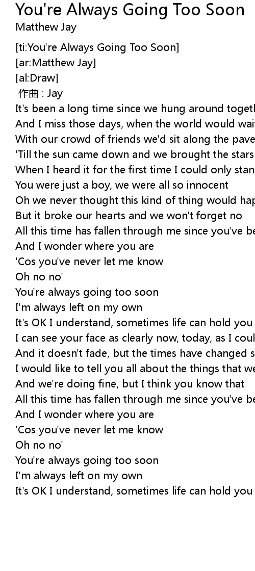 | [00:52.03] | You were just a boy, we were all so innocent |