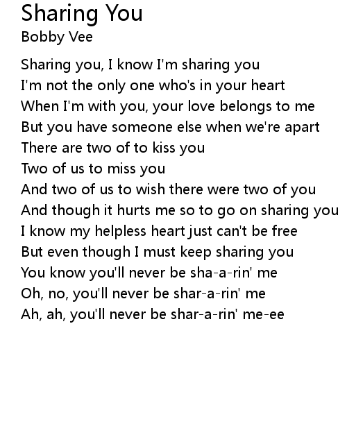 | Ah, ah, you'll never be shar-a-rin' me-ee |