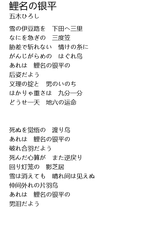 | あれは 鲤名の银平の | |