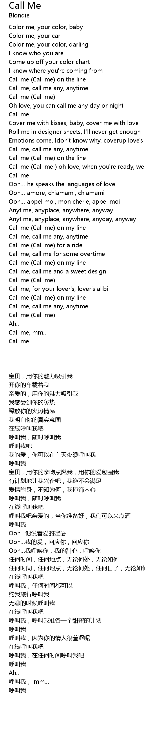 | [01:51.000] | Ooh appel moi, mon cherie, appel moi |