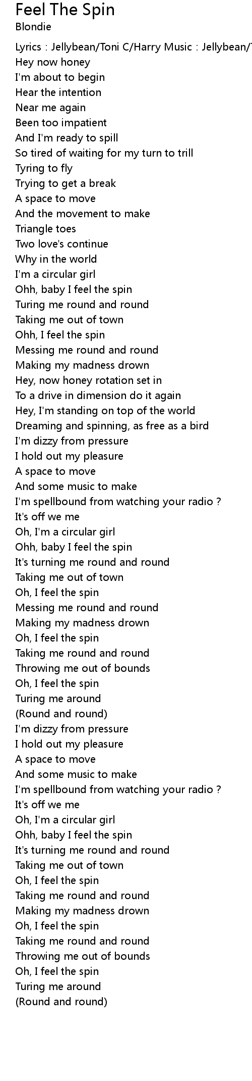 | Ohh, baby I feel the spin | |