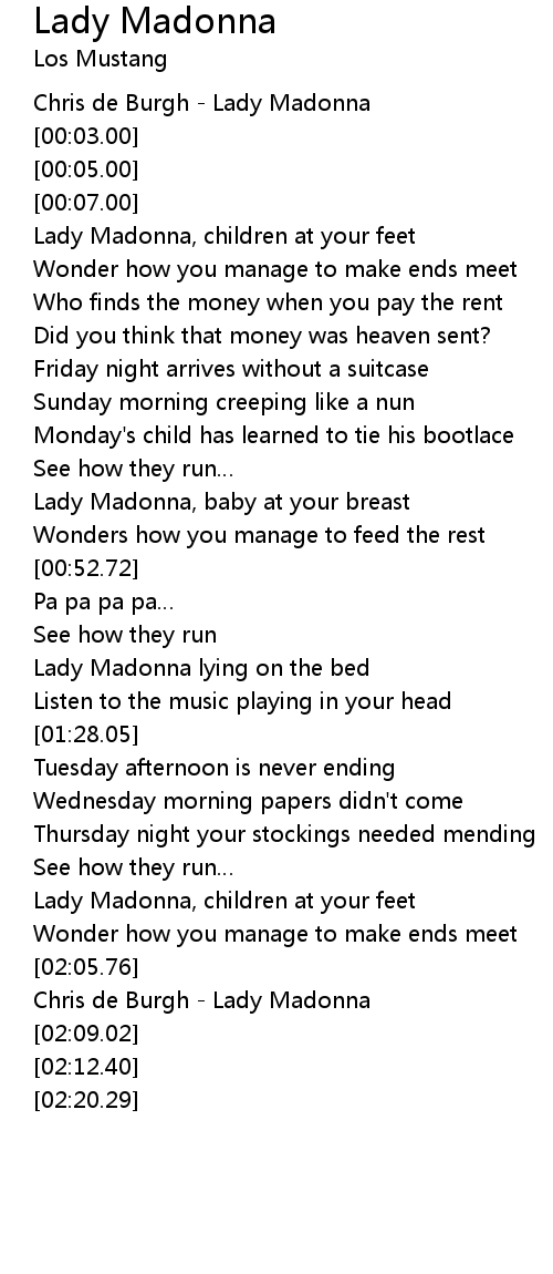 | [00:44.30] | Lady Madonna, baby at your breast |