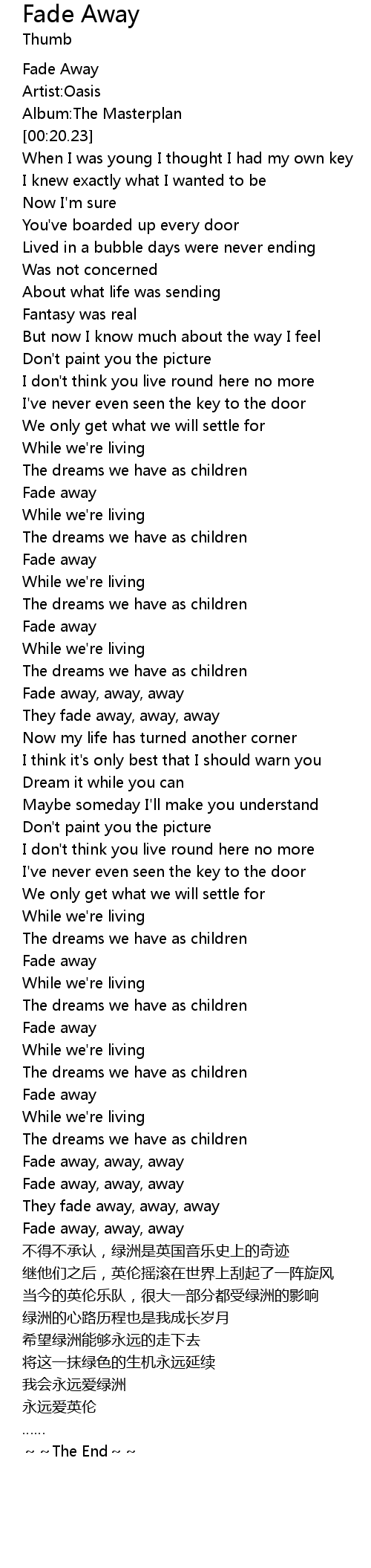 | [03:35.86] | 希望绿洲能够永远的走下去 |