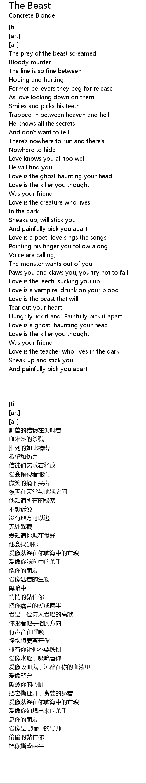 Love is the beast that will |