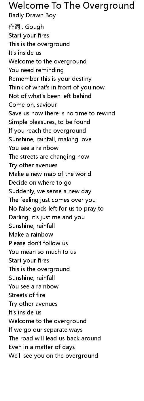 | Welcome to the overground | |