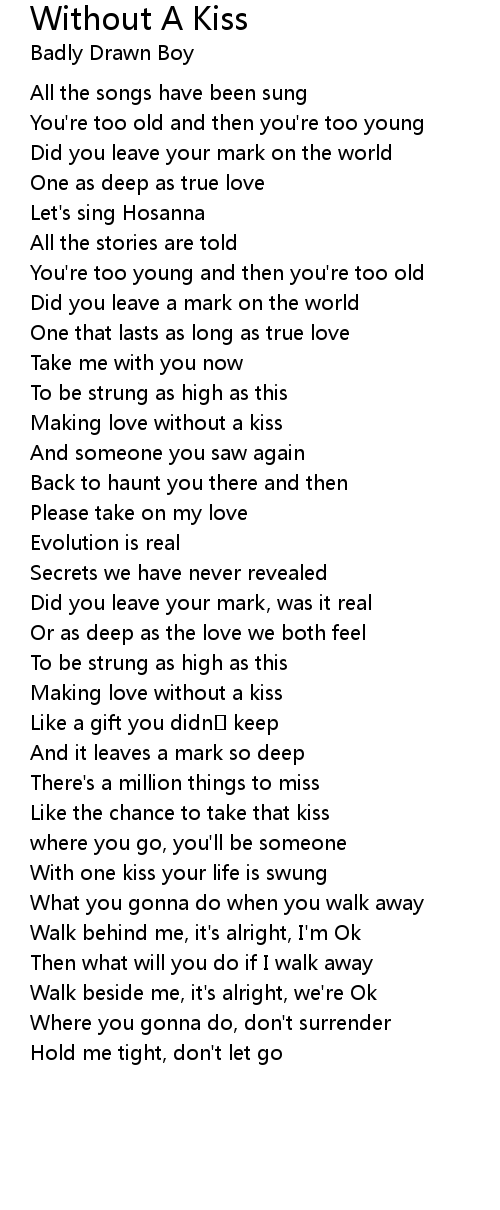 | Song | Without A Kiss |