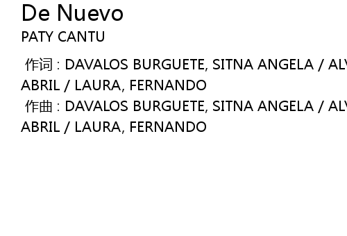 | [00:00.000] | 作词 : DAVALOS BURGUETE, SITNA ANGELA / ALVAREZ CARDENAS, MICHELLE ABRIL / LAURA, FERNANDO |