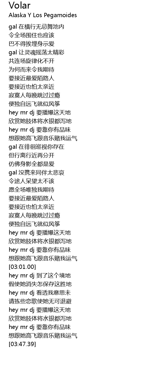 | [03:16.39] | hey mr dj 到了这个境地 |